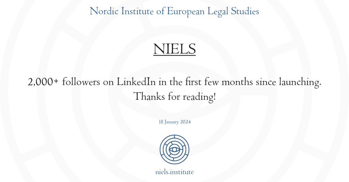 Since launching a couple of months ago back in summer 2023, the Nordic Institute of European Legal Studies (NIELS) has had 118 posts about various legal developments from northern Europe.