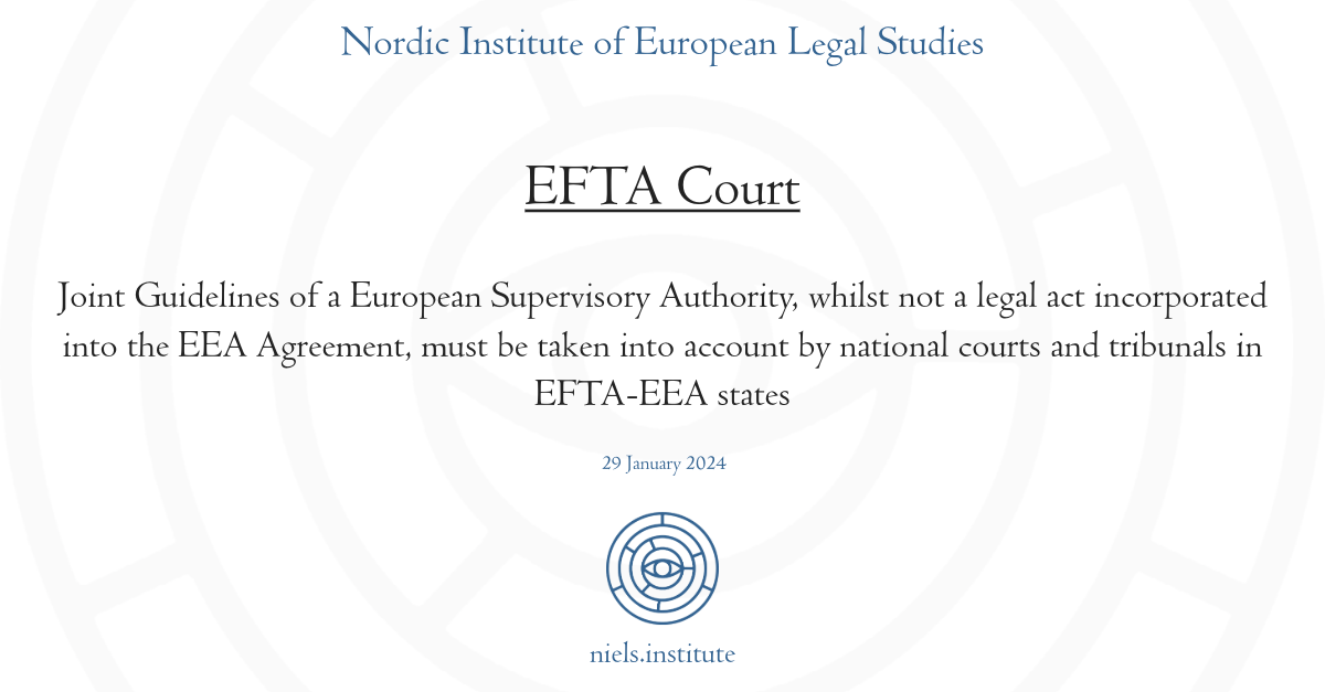 In the case at hand, the EFTA Court stated that ‘Joint Guidelines’ were not a legal act incorporated into the EEA Agreement, and thus, not binding on the parties within the meaning of Article 7 EEA. Therefore, EIOPA’s actions in this regard do no produce binding legal effects. Nevertheless, the EFTA Court were keen to temper this conclusion of EEA law by noting that, it is for the national courts and tribunals of EFTA-EEA states,