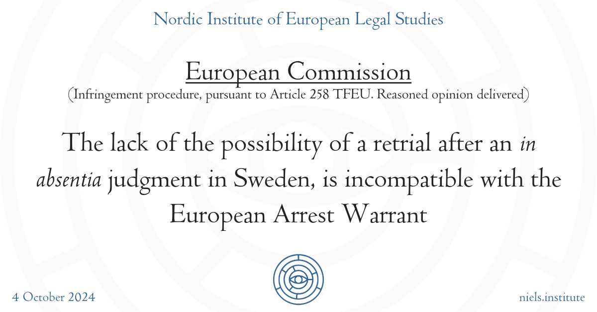 The European Commission has recently pursued Sweden to ensure its compliance with the Framework Decision on the European Arrest Warrant (EAW) and the associated surrender procedures through the infringement procedure (INFR(2020)2362). The Commission, in a reasoned opinion, has stated that the lack of the possibility of a retrial after an in absentia judgment in Sweden, inter alia, is incompatible with the EAW.
